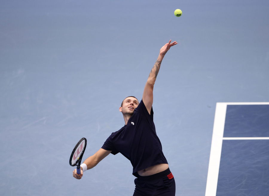 Tennis – ATP 500 – Erste Bank Open – Wiener Stadthalle, Vienna, Austria – Britain’s Dan Evans in action during his semi final match against Italy’s Lorenzo Sonego REUTERS/Lisi Niesner
