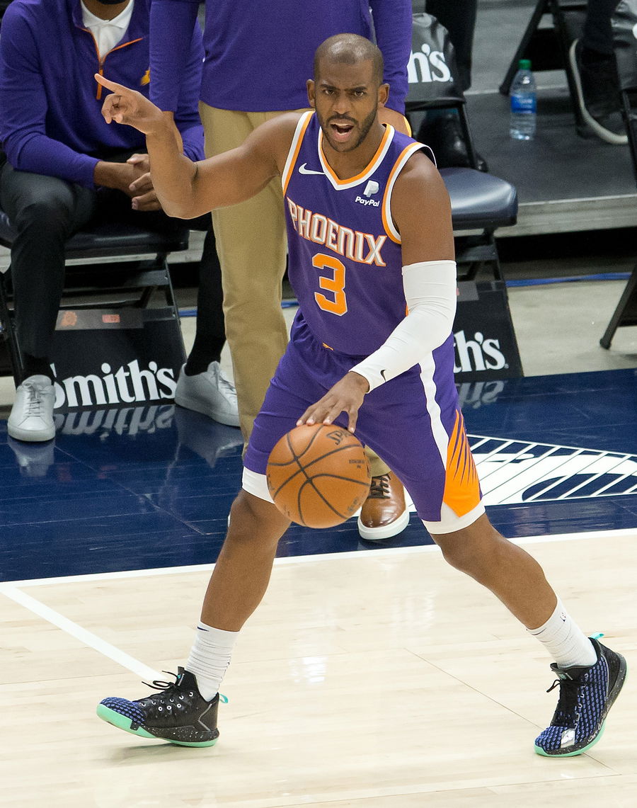 Dec 14, 2020; Salt Lake City, Utah, USA; Phoenix Suns guard Chris Paul (3) dribbles up the court during the first quarter against the Utah Jazz at Vivint Smart Home Arena. Mandatory Credit: Russell Isabella-USA TODAY Sports