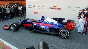 Toro Rosso revealed its car for 2017, the STR12 today. The paint scheme is quite different from last year’s. A combination of bright red and blue colors with some silver detailing. Sainz and Kvyat revealed the car to the press at Barcelona. Where testing is set to start from Monday.