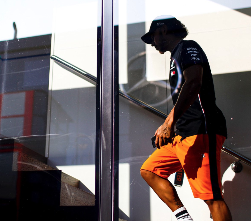 🤭 Lewis fuels rumours he’s joining @McLarenF1 by wearing 🍊 shorts…