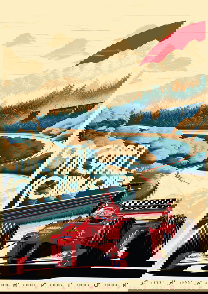 Crooked Cartoon has claimed that the poster depicts Michael Schumacher on his way to victory in the 2000 world championship, which was his first title with Ferrari and third title overall. The image has been inspired by the Art Deco posters of Formula 1’s golden era. The poster, has been printed is A2 in size and has a silk finish, retails for $36.