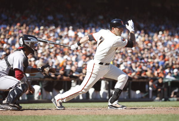 BBN-ASTROS-GIANTS San Francisco Giants Mark DeRosa 7 singles to right to bring Andres Torres home to make the score 3-3 against the Houston Astros in the 10th inning at AT&T Park in San Francisco, California, on Sunday, August 28, 2011. Josie Lepe/San Jose Mercury News/MCT San Francisco CA USA EDITORIAL USE ONLY Copyright: xx 1110391 JosiexLepex krtphotoslive505801