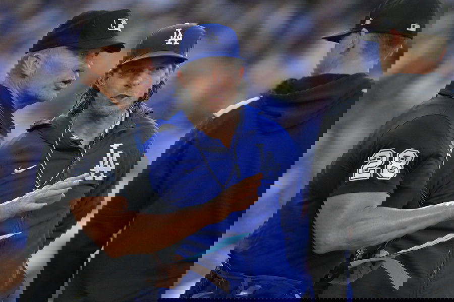 MLB, Baseball Herren, USA Chicago White Sox at Los Angeles Dodgers Jul 2, 2025 Los Angeles, California, USA Los Angeles Dodgers bench coach Danny Lehmann 0 talks with umpire Jim Wolf 28 prior to the game against the Chicago White Sox at Dodger Stadium. Los Angeles Dodger Stadium California USA, EDITORIAL USE ONLY PUBLICATIONxINxGERxSUIxAUTxONLY Copyright: xJaynexKamin-Onceax 20250702_jko_aj4_054
