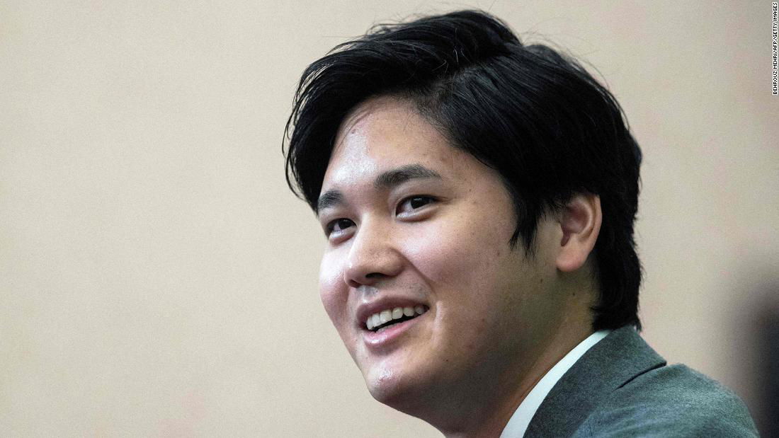 Major League Baseball (MLB) All-Star player Shohei Ohtani of Japan, who plays for the Los Angeles Angels, attends a press conference in Tokyo on November 15, 2021. (Photo by Behrouz MEHRI / AFP) (Photo by BEHROUZ MEHRI/AFP via Getty Images)