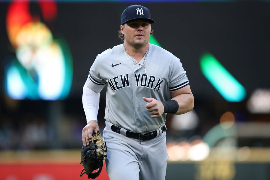SEATTLE – JULY 7: Luke Voit #59 of the New York Yankees looks on during the game against the Seattle Mariners at T-Mobile Park on July 7, 2021 in Seattle, Washington. The Yankees defeated the Mariners 5-4. (Photo by Rob Leiter/MLB Photos via Getty Images)