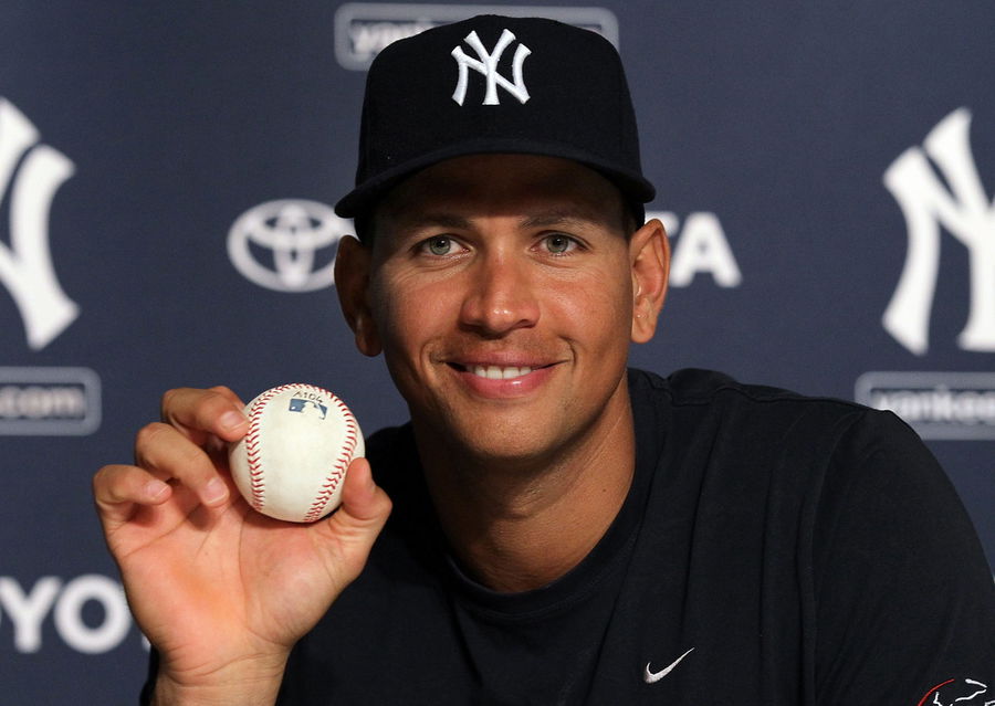 NEW YORK – AUGUST 04: Alex Rodriguez #13 of the New York Yankees holds the ball he used to hit his 600th career home run. Rodriguez hit a first inning two run home run against pitcher Shaun Marcum of the Toronto Blue Jays on August 4, 2010 at Yankee Stadium in the Bronx borough of New York City. (Photo by Jim McIsaac/Getty Images)
