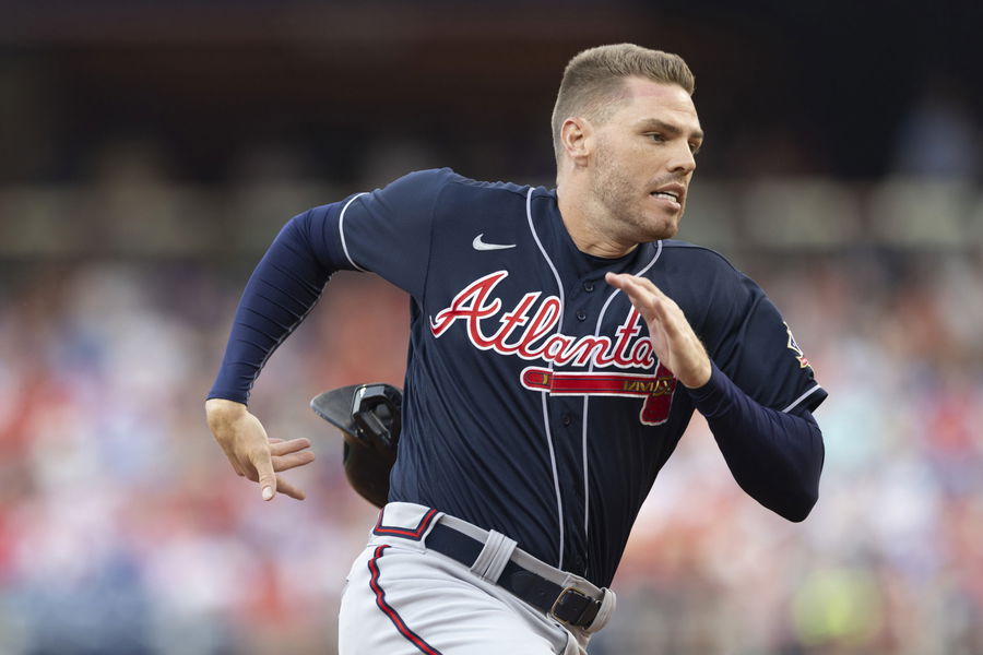 PHILADELPHIA, PA – JULY 23: Freddie Freeman #5 of the Atlanta Braves runs to third base in the top of the first inning against the Philadelphia Phillies at Citizens Bank Park on July 23, 2021 in Philadelphia, Pennsylvania. (Photo by Mitchell Leff/Getty Images)