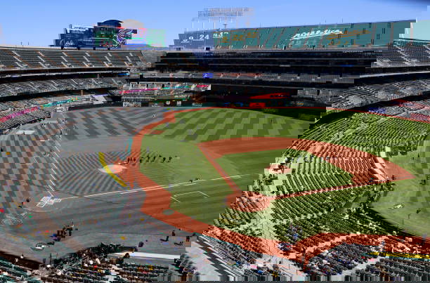 OAKLAND, CALIFORNIA – MAY 17: A view of the field before the Oakland Athletics MLB game against the Arizona Diamondbacks at the Coliseum in Oakland, Calif., on Wednesday, May 17, 2023. Attendance has been at an all-time low this year with the teams possible move to Las Vegas. (Jane Tyska/Digital First Media/East Bay Times via Getty Images)