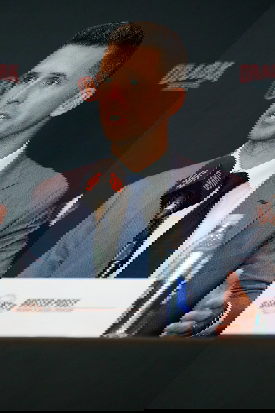 MLB, Baseball Herren, USA San Francisco Giants press conference, PK, Pressekonferenz Oct 1, 2024 San Francisco, CA, USA San Francisco Giants president of baseball operations Buster Posey addresses the media during an introductory press conference at Oracle Park. San Francisco CA USA, EDITORIAL USE ONLY PUBLICATIONxINxGERxSUIxAUTxONLY Copyright: xRobertxEdwardsx 20241001_gma_rl6_00178