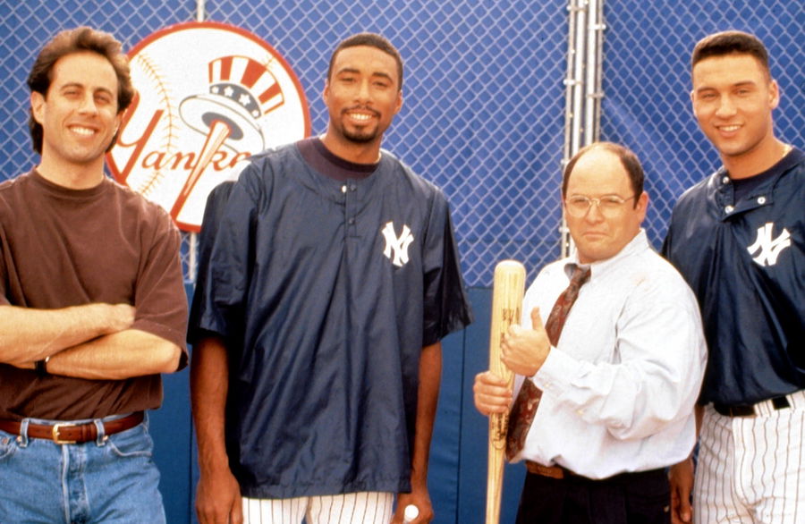After being unemployed for a year, George Costanza becomes an assistant to the traveling secretary of the New York Yankees. And in the famous episode 9 from season 8, Derek Jeter and Bernie Williams grace the screen.