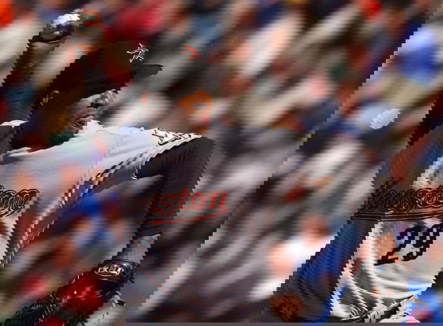 Dominican Closing pitcher Octavio Dotel #29 of the Houston Astros sticks his tongue out as he throws the ball in the ninth inning against the Chicago Cubs during a game 02 June 2004 at Wrigley Field in Chicago, Illinois. The Astros defeated the Cubs 5-1. (Jonathan Daniel/Getty Images/AFP) FOR NEWSPAPERS AND TV USE ONLY (Photo by Jonathan Daniel / Getty Images North America / Getty Images via AFP)
