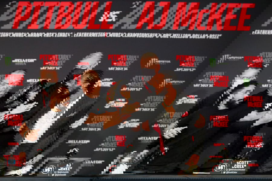 Everything was fine between Patricio Pitbull and A.J. McKee until the very end of the #Bellator263 press conference.