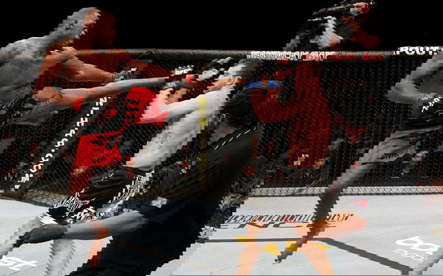 “Bones” goes on to dance around the octagon for nine minutes manhandling Bader before locking on a guillotine choke which would eventually prove to be the end of Bader in the huge fight.