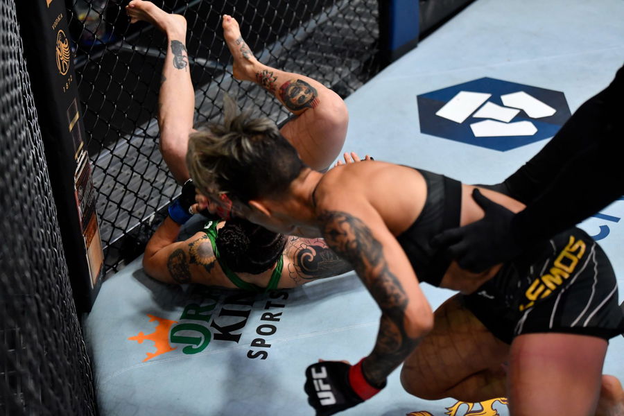 The fight started off well with both women feeling each other out. However, as the fight continued, Lemos began landing with more precision and venom behind her shots. The finishing sequence saw Ruiz rushing into Lemos’ range. The Brazilian fighter quickly moved out of the way and landed a beautiful check right hook.