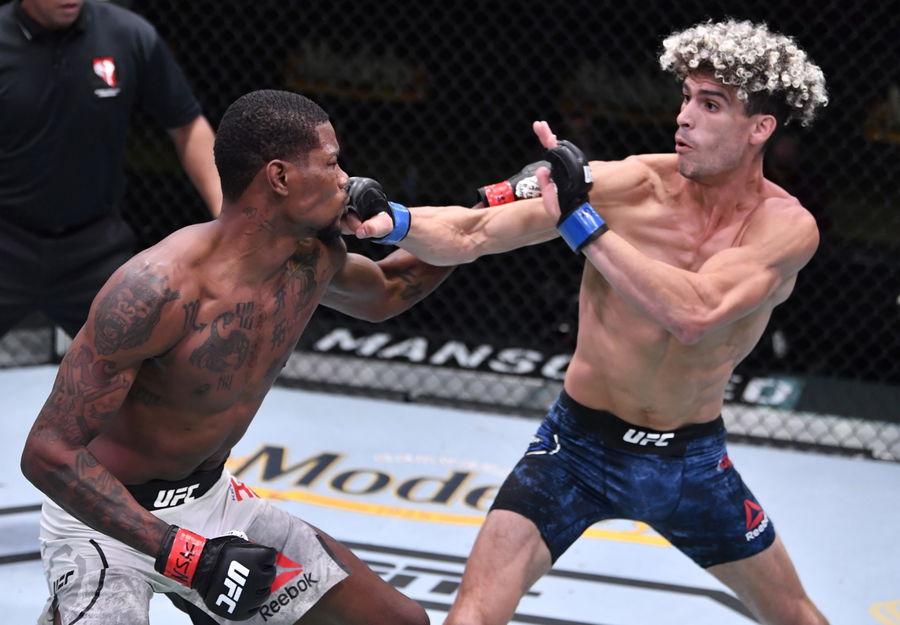 LAS VEGAS, NEVADA – OCTOBER 31: (R-L) Charlie Ontiveros punches Kevin Holland in a middleweight bout during the UFC Fight Night event at UFC APEX on October 31, 2020 in Las Vegas, Nevada. (Photo by Jeff Bottari/Zuffa LLC)