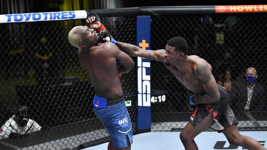 LAS VEGAS, NEVADA – DECEMBER 12: Kevin Holland celebrates his KO victory over Jacare Souza of Brazil in their middleweight bout during the UFC 256 event at UFC APEX on December 12, 2020 in Las Vegas, Nevada. (Photo by Jeff Bottari/Zuffa LLC)