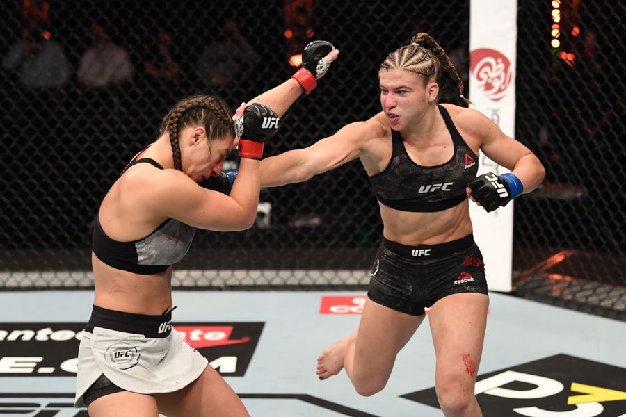 ABU DHABI, UNITED ARAB EMIRATES – OCTOBER 24: (R-L) Miranda Maverick punches Liana Jojua of Georgia in their women’s flyweight bout during the UFC 254 event on October 24, 2020 on UFC Fight Island, Abu Dhabi, United Arab Emirates. (Photo by Josh Hedges/Zuffa LLC via Getty Images)