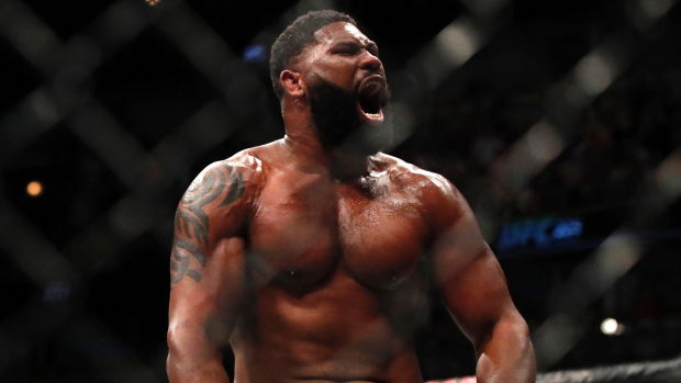 LAS VEGAS, NEVADA – JUNE 20: Curtis Blaydes reacts after his decision victory over Alexander Volkov in their heavyweight bout during the UFC Fight Night event at UFC APEX on June 20, 2020 in Las Vegas, Nevada. (Photo by Chris Unger/Zuffa LLC)