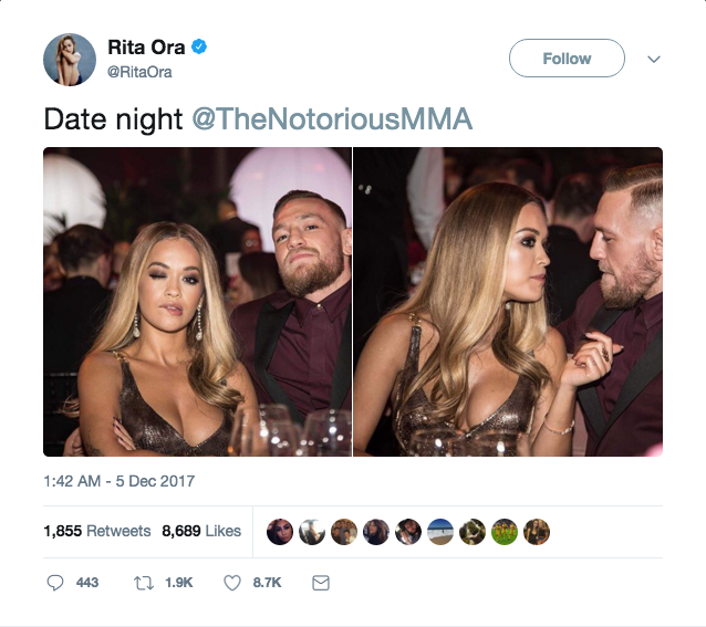 Rita Ora posts a selfie with Conor McGregor, captioned “Date Night”