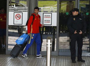 Spain’s national team player Alvaro Morata who plays for Juventus, exits Barajas airport as the team returned to Spain following the postponement of a friendly match between Belgium and Spain for security reasons after the Paris attacks, in Madrid, Spain, November 17, 2015. REUTERS/Paul Hanna