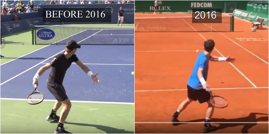 Murray has made considerable changes to his forehand as well. The following image shows the placement of his right hand behind his back, which was far too extreme earlier, and meant less acceleration and impact. In the 2016 picture, it is seen that his right hand is more close to the body plane which helps in accelerating the shot.