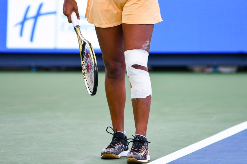 With the Japanese taking the game to deuce, on her serve she halted the play and availed a Medical Time Out for her left knee and her knee was heavily strapped. She finished the game and landed up losing it due to lack of movement eventually retired from the match since her move to her fullest.