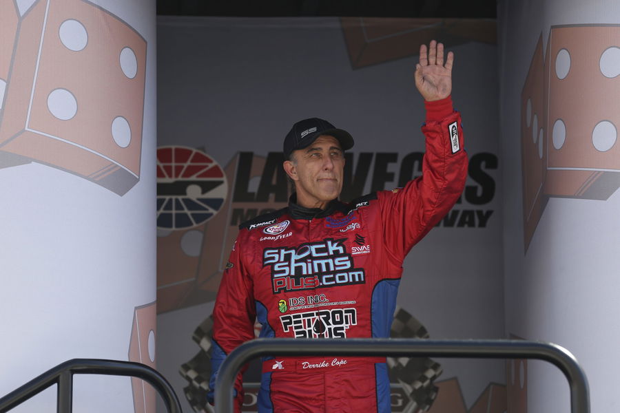 Derrike Cope, driver of the #70 SWAE Watches/Trayvax.com Chevrolet, greets fans during the NASCAR XFINITY Series Boyd Gaming 300 at Las Vegas Motor Speedway on March 7, 2015 in Las Vegas, Nevada.