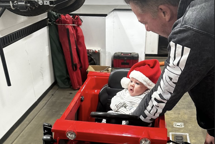 But before that, do you remember when he welcomed Dom with the caption, “Meet our new teammate, Dominic James Stewart”? What a welcome from the racer father. Additionally, the Stewart kid’s been getting a lot of gifts, but this time, the Christmas gift has surpassed every other gift. It is a red vehicle from the house of Johnson’s Horsepower Garage and is an exquisite product indeed.