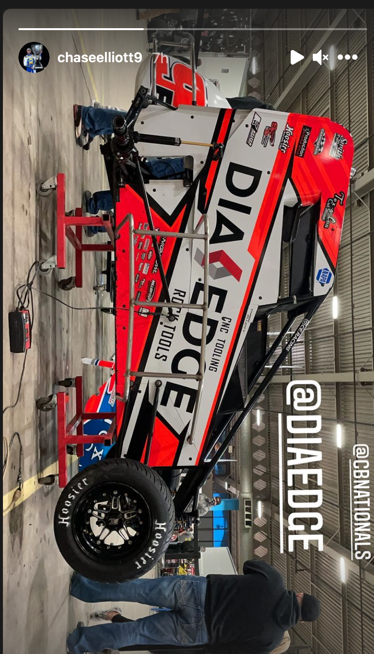 For the first time in his racing career, Chase Elliott will compete in the Chili Bowl Nationals. Needless to say, he is utterly excited and eager to get underway. In a recent Instagram story, he posted a picture of his DiaEdge car for the dirt event.