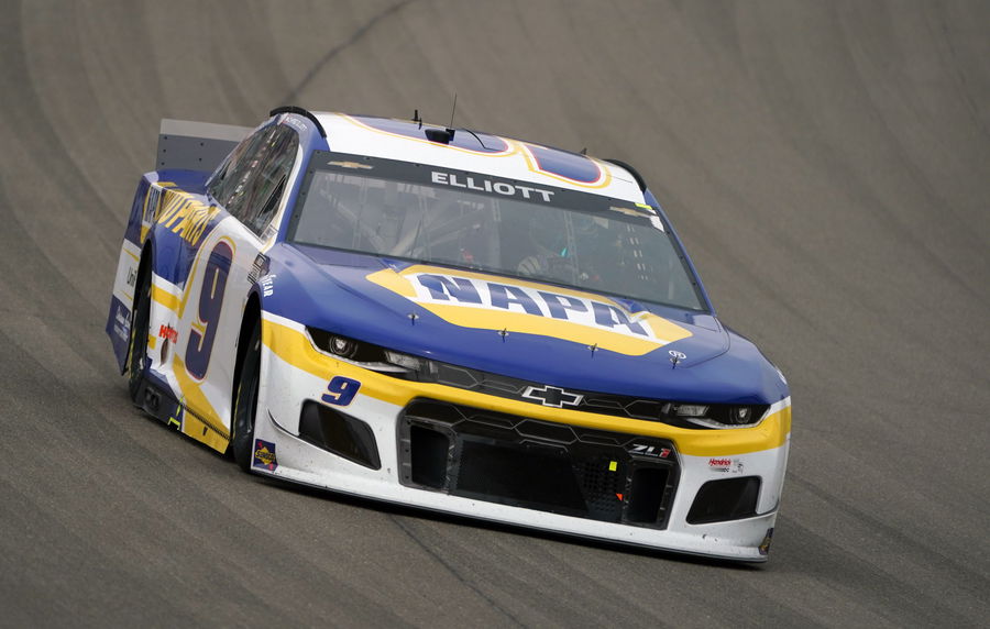 Mar 7, 2021; Las Vegas, Nevada, USA; NASCAR Cup Series driver Chase Elliott (9) during the Pennzoil 400 at Las Vegas Motor Speedway. Mandatory Credit: Gary A. Vasquez-USA TODAY Sports