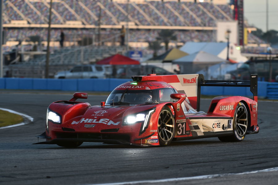 Jan 30, 2021; Daytona Beach, FL, USA; IMSA Series driving team of Felipe Nasr, Mike Conway, Pipo Derani and Chase Elliott (31) during the Rolex 24 at Daytona International Speedway. Mandatory Credit: Jasen Vinlove-USA TODAY Sports