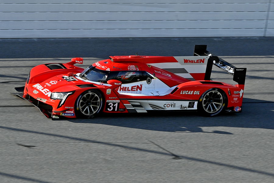 Daytona Beach, FL, USA; IMSA Series driving team of Felipe Nasr, Mike Conway, Pipo Derani and Chase Elliott (31) during the Rolex 24 at Daytona International Speedway. Mandatory Credit: Jasen Vinlove-USA TODAY Sports