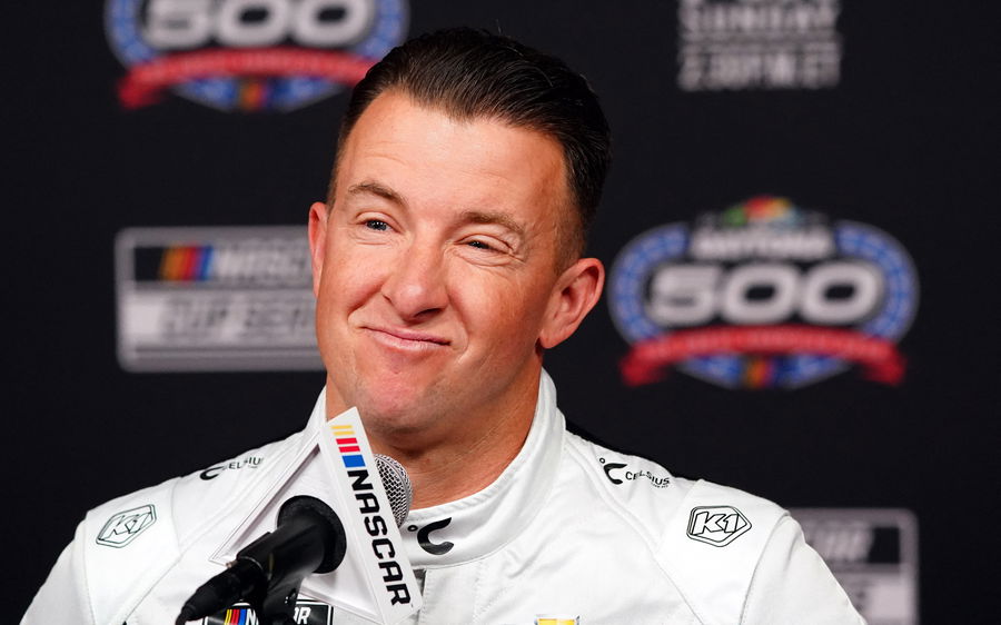 Feb 14, 2024; Daytona Beach, Florida, USA; NASCAR Cup Series driver AJ Allmendinger (16) speaks with reporters during media day at Daytona International Speedway. Mandatory Credit: John David Mercer-USA TODAY Sports