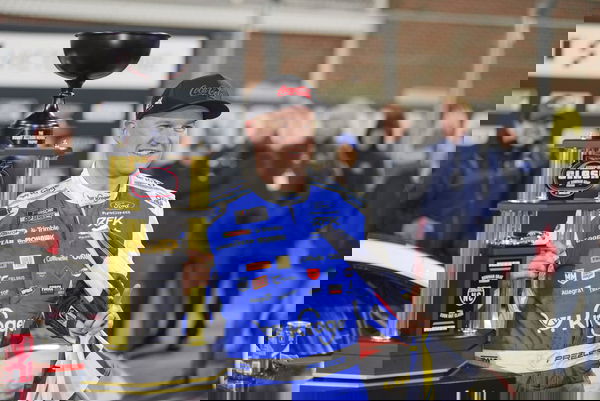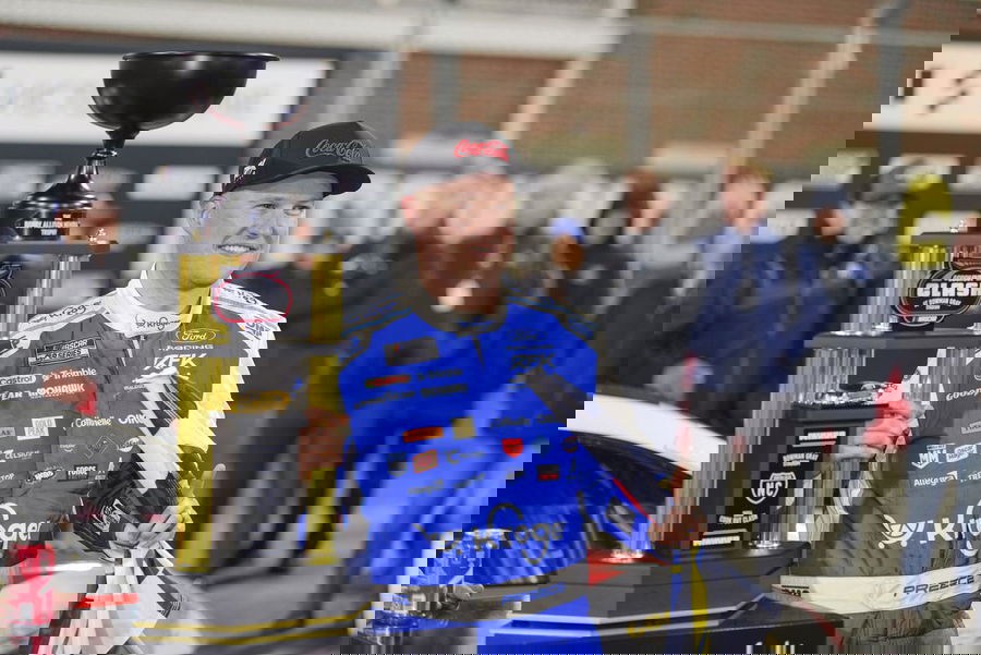 NASCAR, Motorsport, USA Cook Out Clash at Bowman Gray Feb 4, 2026 Winston-Salem, North Carolina, USA NASCAR Cup Series driver Ryan Preece 60 holds the Bobby Allison Memorial Trophy after winning the Cook Out Clash at Bowman Gray Stadium. Winston-Salem Bowman Gray Stadium, North Carolina, USA, EDITORIAL USE ONLY PUBLICATIONxINxGERxSUIxAUTxONLY Copyright: xJimxDedmonx 20260204_jhp_db2_0221