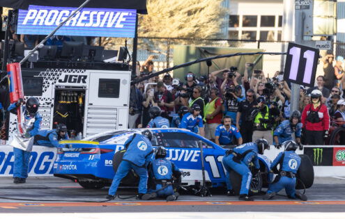 NASCAR, Motorsport, USA NASCAR Cup Series Championship Nov 2, 2025 Avondale, Arizona, USA NASCAR Cup Series driver Denny Hamlin 11 makes his final pit stop of the race during overtime to take four tires during the NASCAR Championship race at Phoenix Raceway. Avondale Phoenix Raceway Arizona USA, EDITORIAL USE ONLY PUBLICATIONxINxGERxSUIxAUTxONLY Copyright: xMarkxJ.xRebilasx 20251102_mjr_su5_056