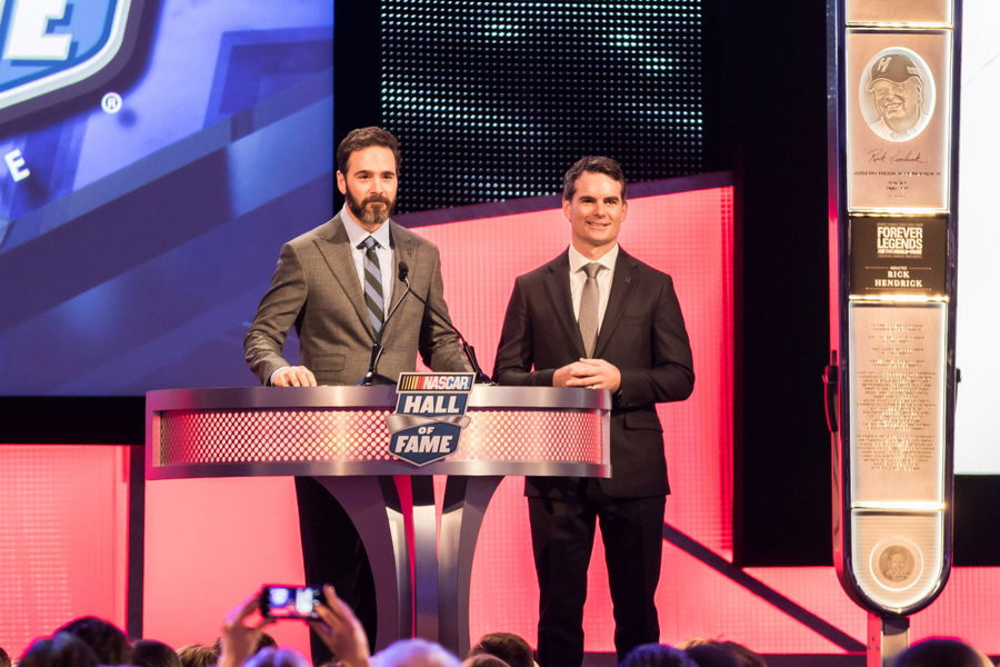 January 20, 2017 – Charlotte, North Carolina, USA – Jimmy Johnson and Jeff Gordon introduce Rick Hendrick at the NASCAR Motorsport USA Hall of Fame Induction Ceremony on Friday, January 20, 2017, in Charlotte, N.C. Rick Hendrick was inducted into the Hall of Fame with Richard Childress, Mark Martin, Raymond Parks, and Benny Parsons. 2017 NASCAR Hall of Fame Induction Ceremony – ZUMAw123 20170120_zap_w123_024