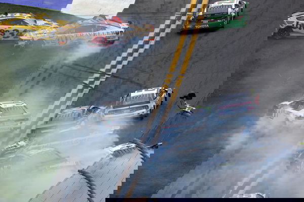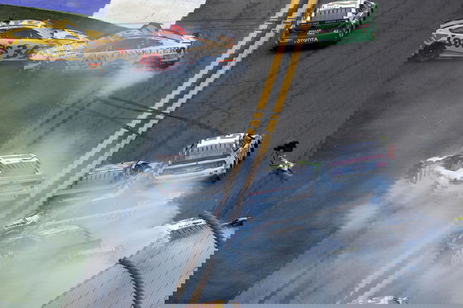 NASCAR, Motorsport, USA DAYTONA 500 Feb 15, 2026 Daytona Beach, Florida, USA NASCAR Cup Series drivers Justin Allgaier 40, Todd Gilliland 34, Denny Hamlin 11, Kyle Larson 5, and Alex Bowman 48 crash during the 68th running of the Daytona 500 at Daytona International Speedway