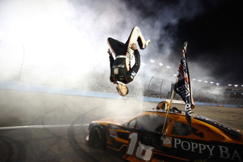 Another Joe Gibbs driver, Carl Edwards, was famous for his backflips after his race wins.