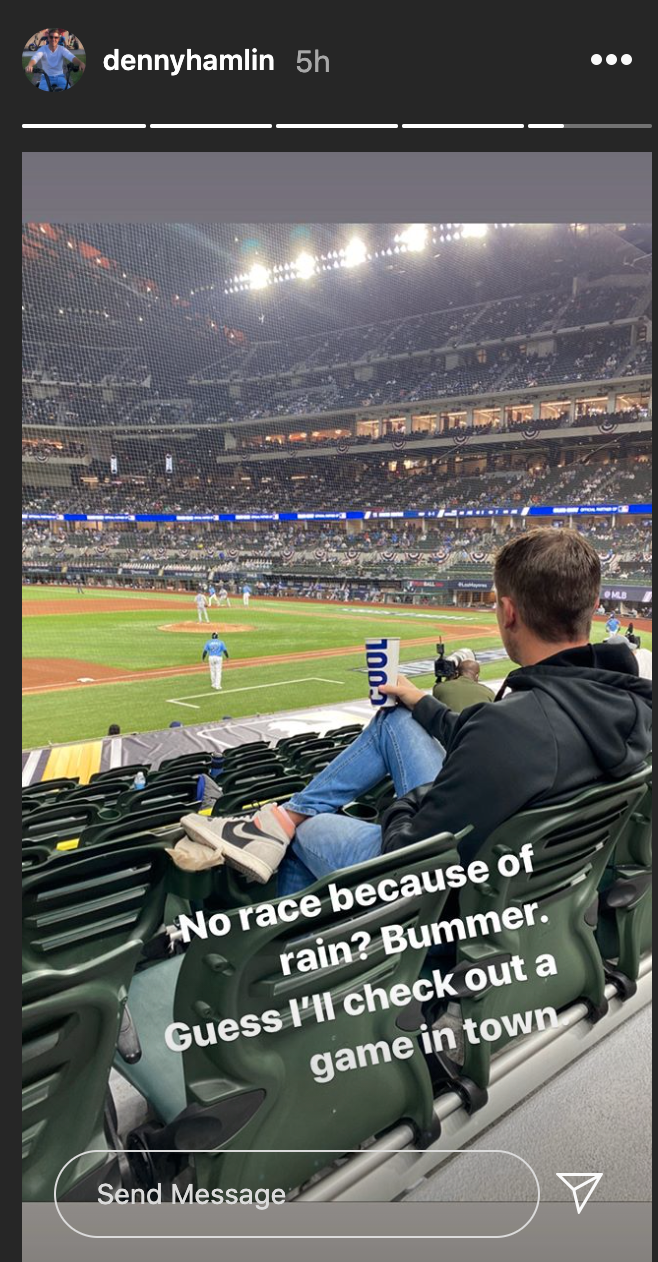 Once he was sure that there wasn’t going to be any racing that night, the driver left the track. Obviously, all the drivers had the same idea and took off for parts unknown. In the meantime, Hamlin’s social media indicated that he was somewhere in Texas, watching a local ball game.