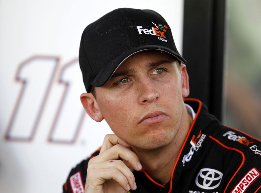 HOMESTEAD, FL – NOVEMBER 19: Denny Hamlin, driver of the #11 FedEx Toyota, sits by his team hauler in the garage area during practice for the NASCAR Sprint Cup Series Ford 400 at Homestead-Miami Speedway on November 19, 2010 in Homestead, Florida. (Photo by Chris Trotman/Getty Images for NASCAR)