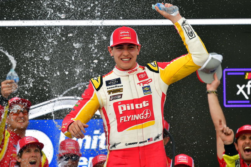 Sammy Smith’s thrilling win at Talladega, where he surged from P27 to overtake Riley Herbst in overtime, is one fans won’t forget soon. With his second Xfinity career win, Smith vaulted from near elimination to the top of the playoff standings.