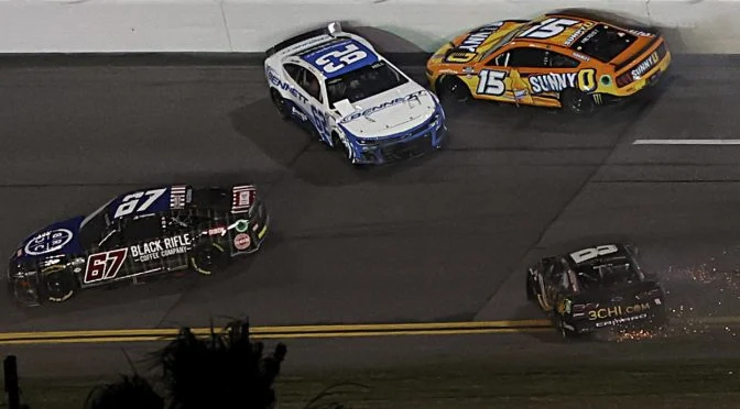 “That was an interesting choice on the last restart. If you could execute it flawlessly, I think it’s not a terrible move. But I don’t know why, we just talked about it, you can’t make a third lane. You can’t do anything. So, why would you not just line your two cars up, leading each lane, and go?”