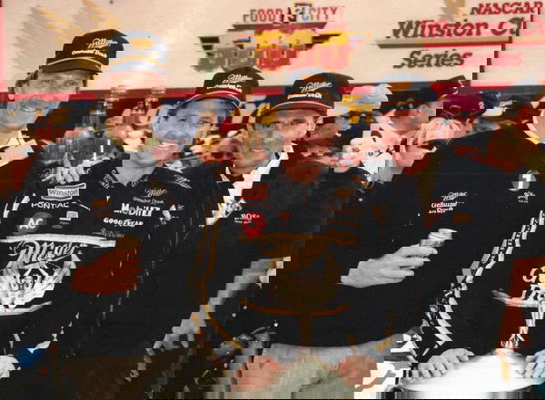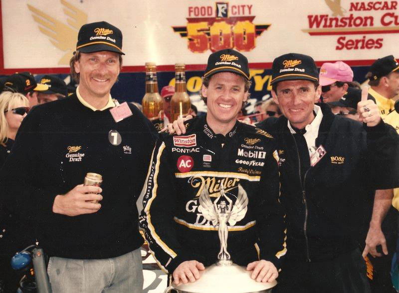 Rusty Wallace (center) celebrates his win at Bristol, dedicating it to Alan Kulwicki, who was killed in a plane crash three days earlier near Bristol, Tenn. Photo courtesy Tom Roberts.