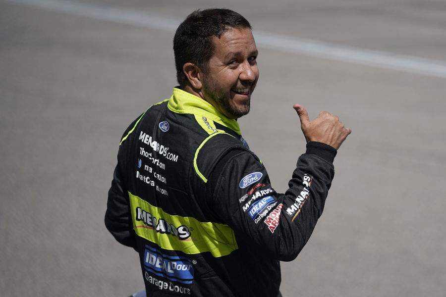 KANSAS CITY, KANSAS – JULY 25: Matt Crafton, driver of the #88 Ford, celebrates after winning the NASCAR Gander RV & Outdoors Truck Series e.p.t 200 at Kansas Speedway on July 25, 2020 in Kansas City, Kansas. (Photo by Kyle Rivas/Getty Images)