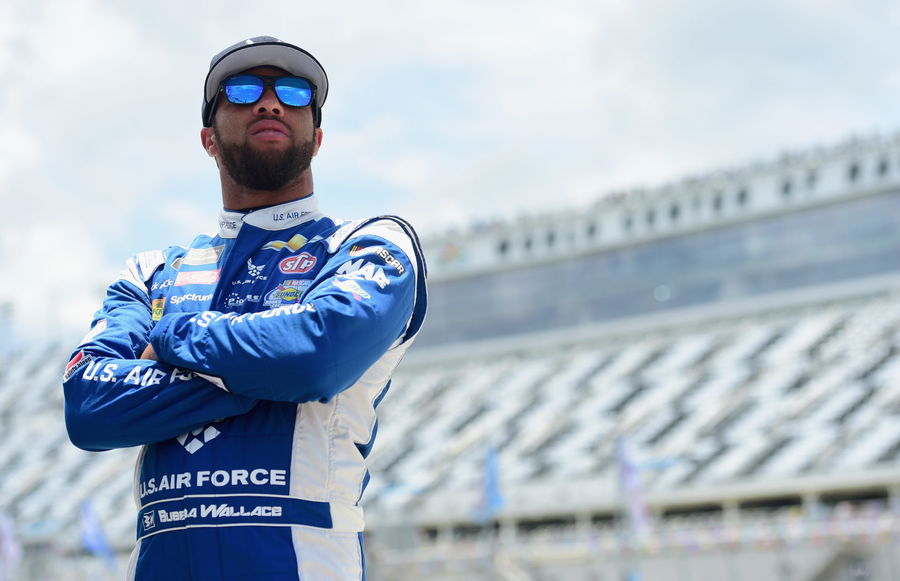 DAYTONA BEACH, FL – JULY 05: Bubba Wallace, driver of the #43 U.S. Air Force Chevrolet, stands by his car during practice for the Monster Energy NASCAR Cup Series Coke Zero Sugar 400 at Daytona International Speedway on July 5, 2018 in Daytona Beach, Florida. (Photo by Jared C. Tilton/Getty Images)