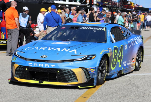 DAYTONA BEACH, FL – FEBRUARY 14: Jimmie Johnson 84 Legacy Motor Club Carvana Toyota drives out of the garage for the final practice for the NASCAR, Motorsport, USA Cup Series Daytona 500 on February 14, 2026 at Daytona International Speedway in Daytona Beach, FL. Photo by Michael Bush/Icon Sportswire AUTO: FEB 14 NASCAR Cup Series Daytona 500 EDITORIAL USE ONLY Icon260214029