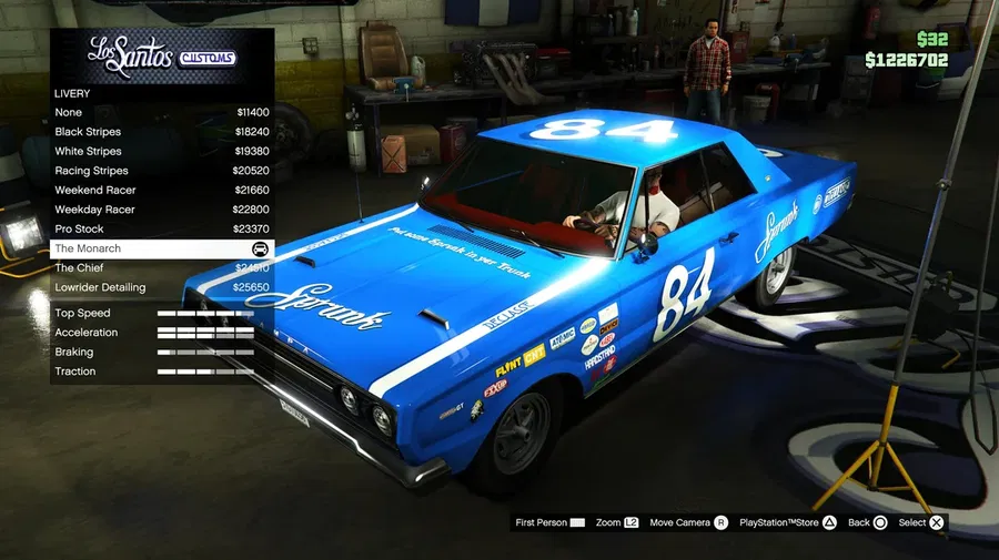 Designers at Rockstar Games created the scheme with clear nods to stock-car legend Richard Petty’s No. 43 car, adding a fun piece of motorsport history to the virtual streets of Los Santos. According to the GTA Wiki, the “Monarch” paint job pays homage to Richard Petty’s #43 stock car, with hood stripes based on the original factory model.