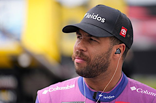 TALLADEGA, ALABAMA – OCTOBER 01: Bubba Wallace, driver of the #45 Leidos Toyota, waits on the grid during qualifying for the NASCAR Cup Series YellaWood 500 at Talladega Superspeedway on October 01, 2022 in Talladega, Alabama. (Photo by Sean Gardner/Getty Images)
