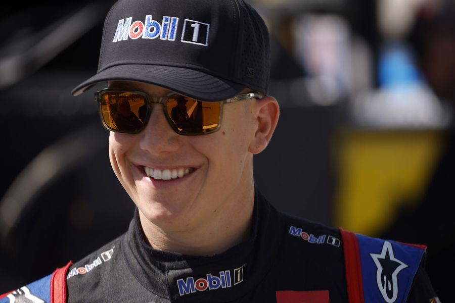 KANSAS CITY, KANSAS – MAY 14: John Hunter Nemechek, driver of the #4 Mobil 1 Toyota, smiles on the grid during practice for the NASCAR Camping World Truck Series Heart of America 200 at Kansas Speedway on May 14, 2022 in Kansas City, Kansas. (Photo by Chris Graythen/Getty Images)