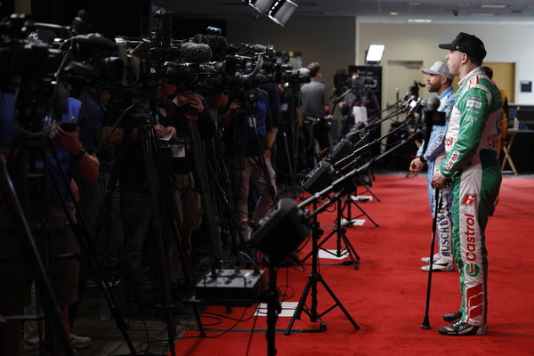 February 11, 2026, Daytona Beach, Fl, USA: BRAD KESELOWSKI 6 of Rochester Hills, MI gets interviewed during Media Day for Daytona 500 at Daytona International Speedway in Daytona Beach , FL. Daytona Beach USA – ZUMAa161 20260211_aaa_a161_087 Copyright: xWalterxG.xArcexSr.x